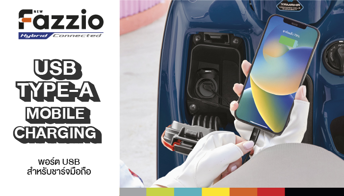 พอร์ต USB สำหรับชาร์จมือถือ พร้อมทุกทริปแบบไร้ขีดจำกัด ชาร์จมือถือได้ทุกที่ด้วยพอร์ต USB Type-A พร้อมช่องเก็บของด้านหน้า ลุยไปทุกทริปไม่ต้องกลัวแบตหมดกลางทาง จะฟังเพลงหรือคุยกับเพื่อนก็สนุกแบบไม่มีสะดุด ขี่ไปได้ทุกทางแบบมีไฟ